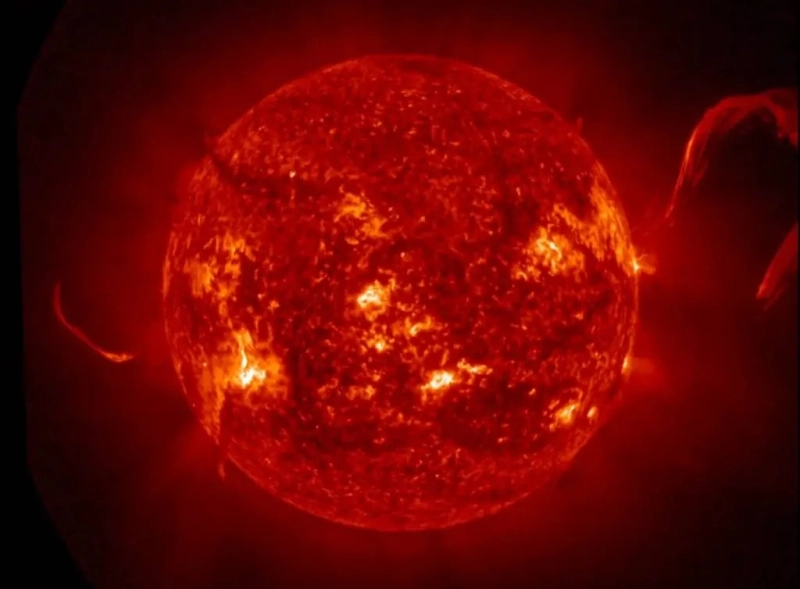 Протуберанцами называют огромнейшие фонтаны раскалённого газа, которые поднимаются над поверхностью Солнца. Особое внимание привлёк правый — на завершающей стадии он почти превзошёл по размеру саму звезду, от которой отделился. В течение почти всей прошлой недели эта структура находилась напротив Земли, и её возможный отрыв мог вызвать серьёзные геомагнитные и радиационные последствия, масштабы которых остаются предметом предположений.
