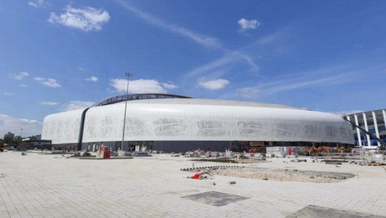 Строительство ледовой арены на Стрелке будет завершено до конца 2025 года. В настоящее время продолжается отделка фасада и внутренних помещений Ледового дворца. На главной арене уже установлены зрительские места, борты, медиакольцо и медиастрока. Также продолжаются работы в подтрибунных помещениях. Инженерные сети практически готовы к работе, завершена установка лифтов.