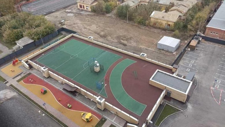 В Омске завершено строительство современного 14-этажного жилого дома на улице Вокзальная. Особенность новостройки заключается в наличии спортивной инфраструктуры на крыше здания, где разместились как детская, так и полноценная футбольная площадка.