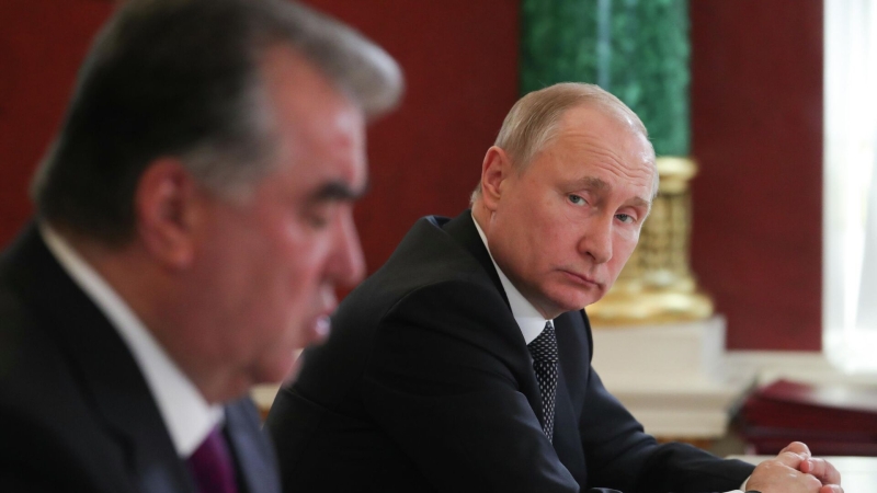 Президент РФ Владимир Путин и президент Таджикистана Эмомали Рахмон. Архивное фото
